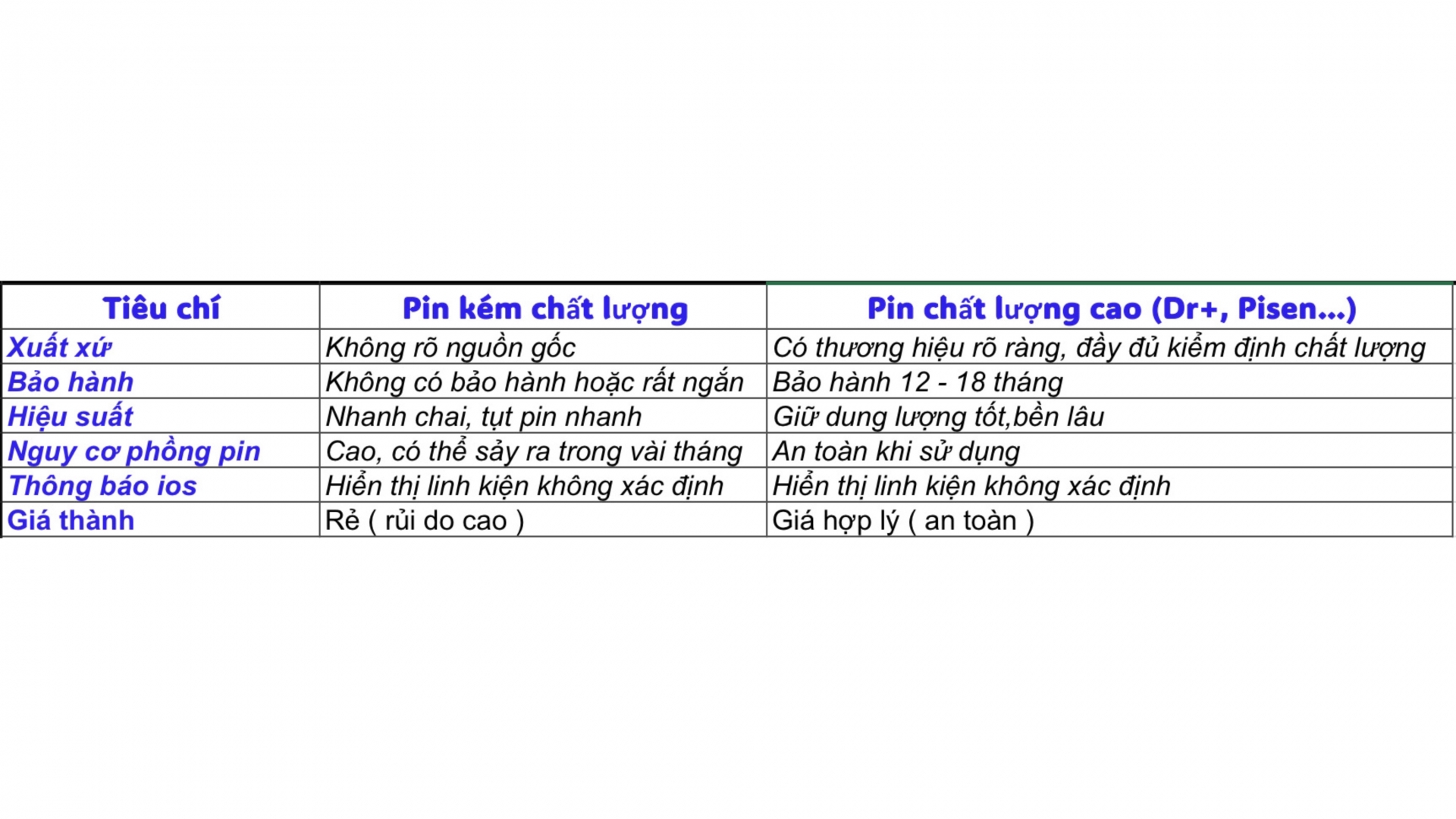 Nếu bạn đang tìm kiếm một viên pin bền bỉ, an toàn và hiệu suất cao, pin Dr+ là giải pháp thay thế hoàn hảo cho iPhone. Với tiêu chuẩn sản xuất nghiêm ngặt, bảo hành rõ ràng và giá thành hợp lý, pin Dr+ đáp ứng đầy đủ nhu cầu sử dụng lâu dài.