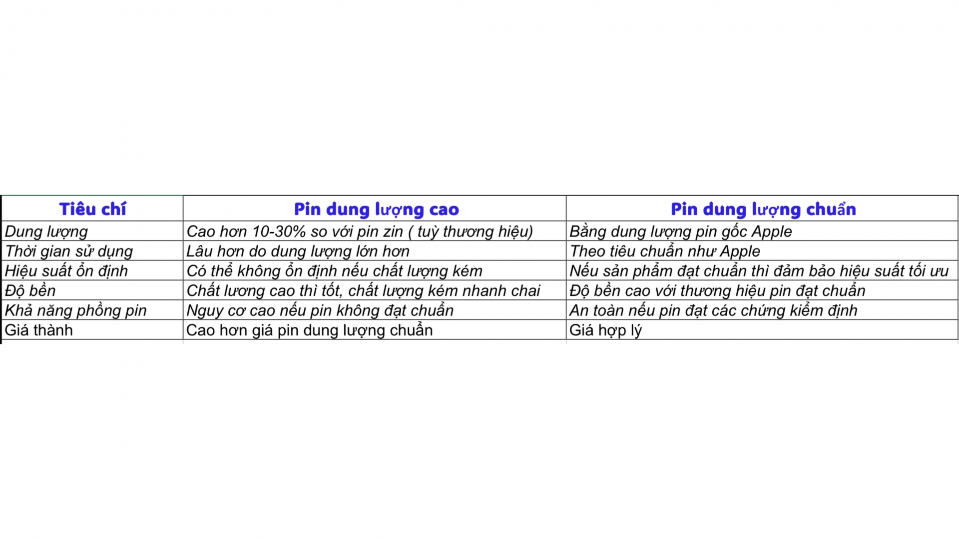 • Pin dung lượng cao giúp iPhone sử dụng lâu hơn nhưng cần chọn sản phẩm chất lượng cao để tránh rủi ro.